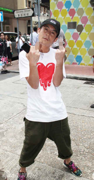 之后陳冠希講了句“不改曬”,然后一度上車,之后再下車,問記者:“你一個(gè)月掙多少錢?”用手機(jī)反拍記者,又趨前想吻記者相機(jī),又做V字和粗口手勢(shì)。陳冠希司機(jī)同陳澤民司機(jī)也上前圖擋記者,秦舒培則一直在車內(nèi)。