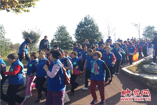 映象網(wǎng)訊(記者 何葉 文/圖)11月5日上午,鄭州市西流湖公園內(nèi)人流如織、熱鬧非凡,河南電臺信息廣播樂齡105.6“健步走、為藍(lán)天”大型公益活動(dòng)如期舉行,1000多名聽友為了公益匯聚在一起,為環(huán)保加油。