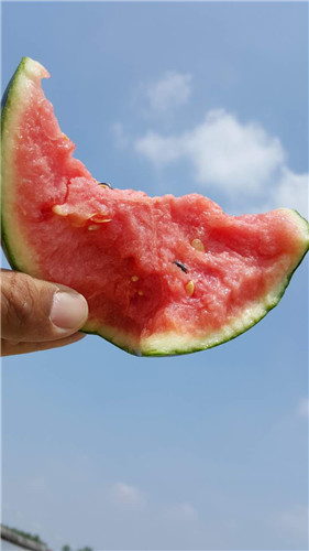 人工授粉、吊蔓種植、牛奶豆?jié){滴灌,定期采摘等多種新型農(nóng)業(yè)技術(shù)的運用,實現(xiàn)種瓜全程科學(xué)管控,確保每一顆成品西瓜都具備形體美觀、甜度高、纖維細、水分足、口感清脆的特點。