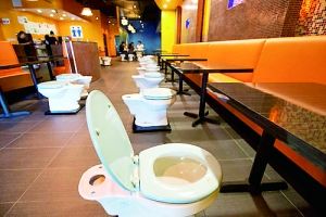 顧客丹尼絲·埃利亞斯說,她點的雞肉盛在一個“小便壺”中,而米飯放在一個微型“馬桶”中。“剛開始,從這些東西里吃飯比較奇怪,但口味確實不錯。”