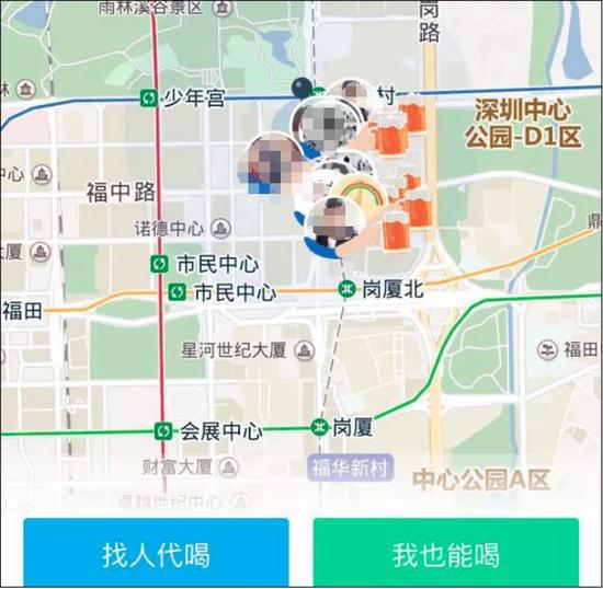 用戶在軟件中輸入或設(shè)置自己的位置,手機畫面的地圖上就會顯示出附近的 “代喝人”。這些“代喝人”在提供“代喝”服務(wù)之前,會提前在軟件上的個人信息中寫明自己的酒量、喜歡的酒類以及性別等基本信息。無論是誰都可以成為代喝人。