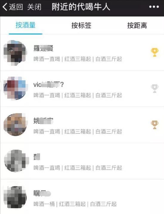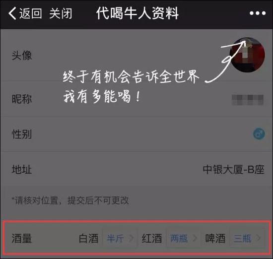 懷著對這項“神服務(wù)”的好奇,韓國記者還在中國特地體驗了一番。據(jù)《中央日報》報道,4日晚,韓國記者辦公室所在的北京市中心建國門一帶,記者嘗試使用了該軟件。建國門這附近還不算娛樂區(qū)域,但在半徑400米以內(nèi)地圖上跳出10名代喝人的位置。記者在點擊其中一名代喝人后立即彈出他的自我介紹——“奧運會金牌級喝酒選手”,“酒量是白酒兩瓶、啤酒一箱”。