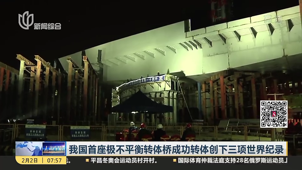 我國首座極不平衡轉(zhuǎn)體橋成功轉(zhuǎn)體