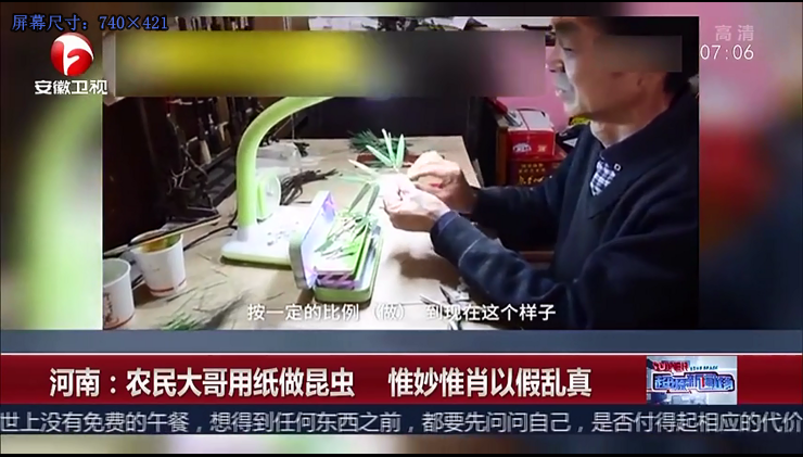 • 農(nóng)民大哥用紙做昆蟲 惟妙惟肖
