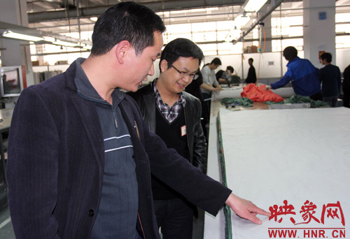 映象網(wǎng)訊(記者趙輝 盧攀登 張開放 文/圖)“王占玉是我們‘領(lǐng)秀’的技術(shù)核心人員,自1997年追隨董事長創(chuàng)業(yè)以來一直擔任技術(shù)部裁剪排版員,對人熱心,工作上講方法。每年從他手下經(jīng)過的面料都價值數(shù)以百萬計。”鄭州領(lǐng)秀服飾有限公司工會主席于亞楠振奮地向記者介紹著。“2010年王占玉被鄭州市總工會授予了五一勞動獎?wù)?,這是對他工作的肯定,也是對他個人品質(zhì)的肯定?!?/p>